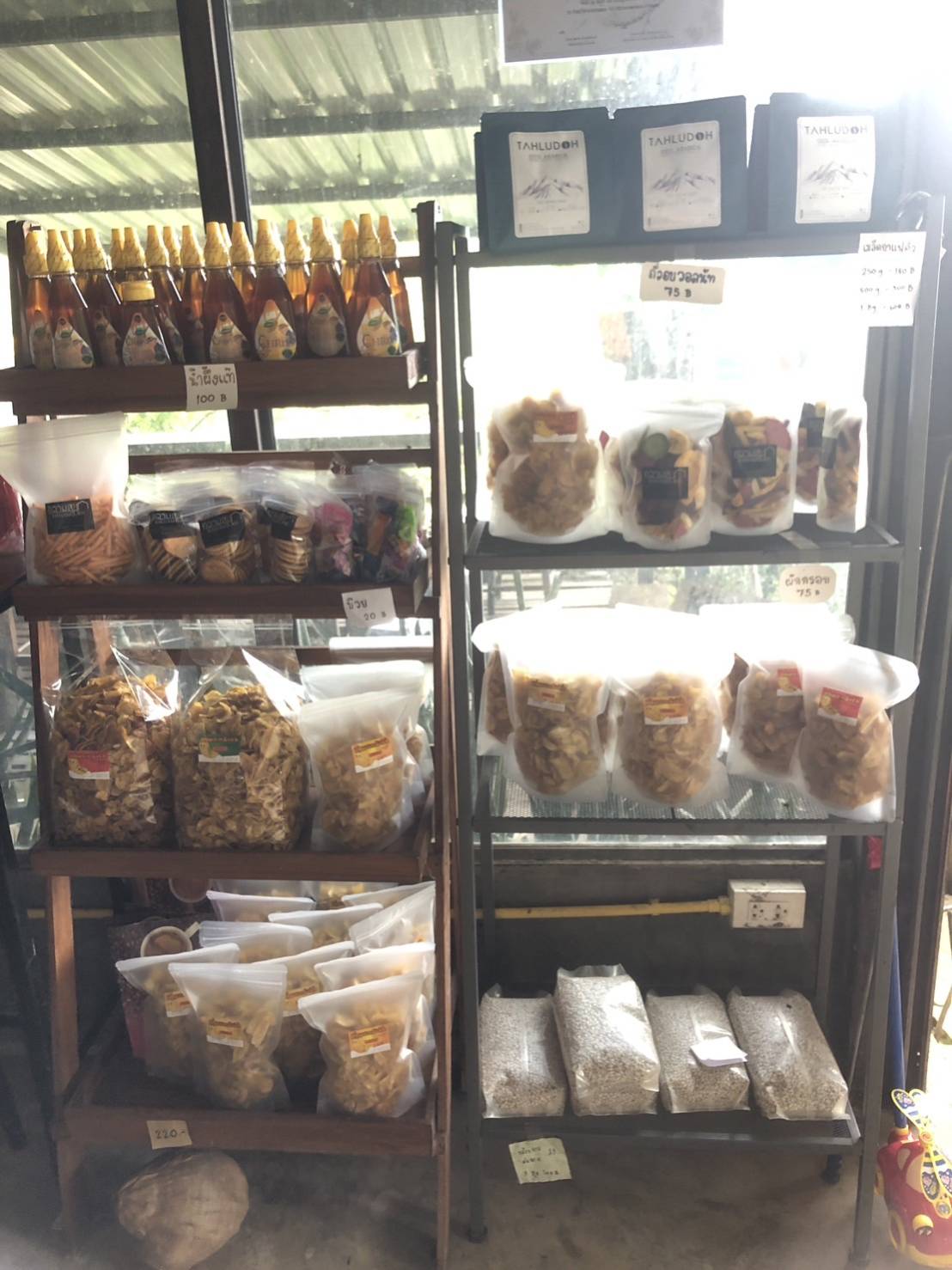 สินค้าโอทอป ผ้าทอชนเผ่า กล้วยฉาบมีหลายรส เช่น รสบาร์บีคิว รสสาหร่าย รสเค็ม หวาน