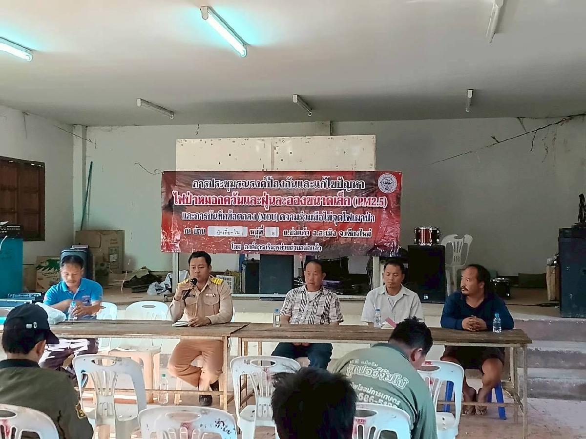 ศูนย์อำนวยการป้องกันและแก้ไขปัญหาไฟป่าหมอกควันและฝุ่นละอองขนาดเล็ก (PM 2.5) ตำบลบ่อแก้ว ได้ลงพื้นที่จัดประชุมประชาคม ณ บ้านป่าเกี๊ยะใน หมู่ที่ 8 เพื่อสร้างความตระหนักรู้และขอความร่วมมือจากประชาชนในพื้นที่ในการร่วมกันป้องกันและแก้ไขปัญหาไฟป่า หมอกควัน และฝุ่นละอองขนาดเล็ก (PM 2.5) ซึ่งส่งผลกระทบต่อสุขภาพของประชาชน สิ่งแวดล้อม และคุณภาพชีวิตโดยรวม