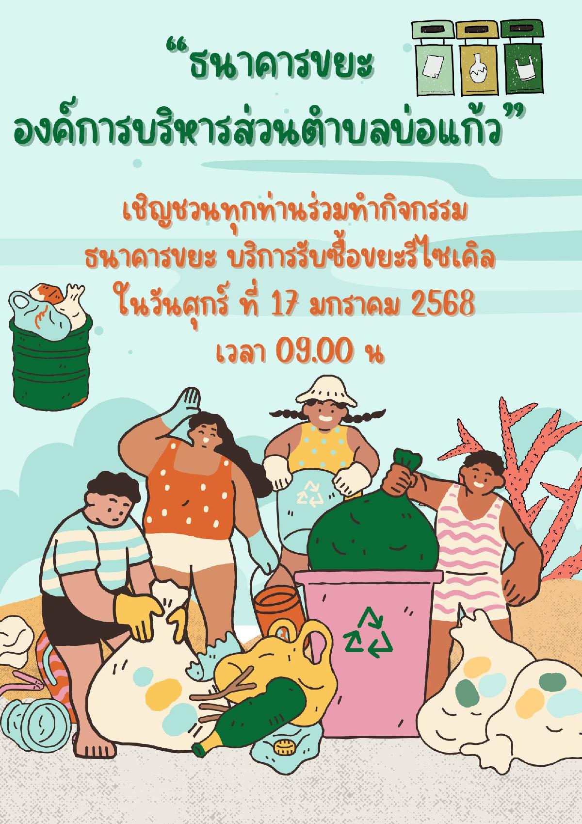 องค์การบริหารส่วนตำบลบ่อแก้ว เชิญชวนทุกท่านร่วมทำกิจกรรมธนาคารขยะ บริการรับซื้อขยะรีไซเคิล ในวันศุกร์ ที่ 17 มกราคม 2568 เวลา 09.00 น