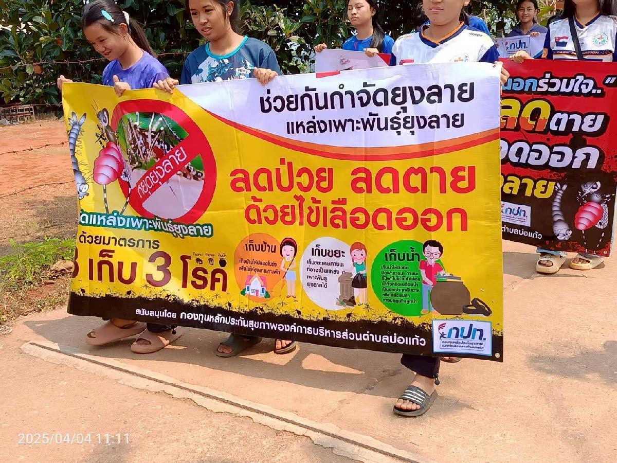 บ้านป่าเกี๊ยะนอก หมู่ที่ 1 ต.บ่อแก้ว ได้มีการเดินรณรงค์ป้องกันโรคไข้เลือดออก เพื่อส่งเสริมให้ประชาชนได้รู้และเข้าใจในการเฝ้าระวังโรคไข้เลือดออกได้อย่างถูกต้องถูกวิธี